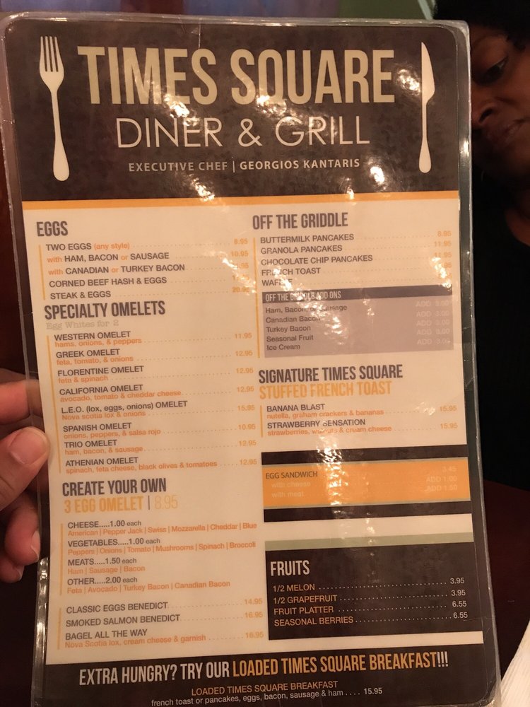 Located in the heart of New York City at 807 8th Ave, Times Square Diner is a go-to spot for American diner cuisine. Offering a variety of breakfast, brunch, and late-night options, this women-owned establishment prides itself on its fast service and generous portion sizes. The menu features flavorful omelettes such as the Greek Omelette and California Omelette, as well as classic breakfast dishes like Eggs Benedict and Buttermilk Pancakes. Customers rave about the attentive service, cleanliness, and reasonable prices, making it a hidden gem in the city. With options for vegans and limited vegetarian choices, Times Square Diner caters to a diverse range of tastes. Whether you're looking for a quick bite or a leisurely meal, this diner is a must-visit for a taste of comforting American fare.